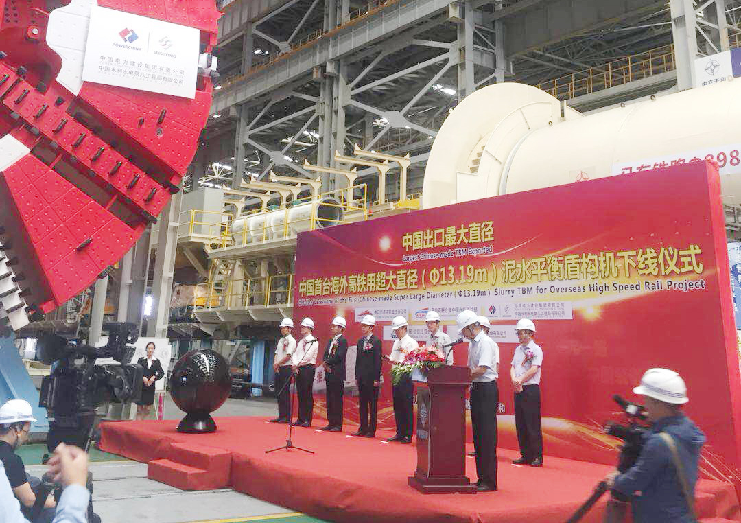 9月29日,由中交天和研制的直徑13.19米泥水平衡盾構機,在江蘇常熟舉行下線儀式,助力“一帶一路”建設,獻禮國慶。此盾構機是用于印尼雅萬高鐵1號隧道施工,是近來亞洲鐵路建設中大直徑盾構機,將再次刷新中國出口海外超大直徑盾構機制造紀錄。