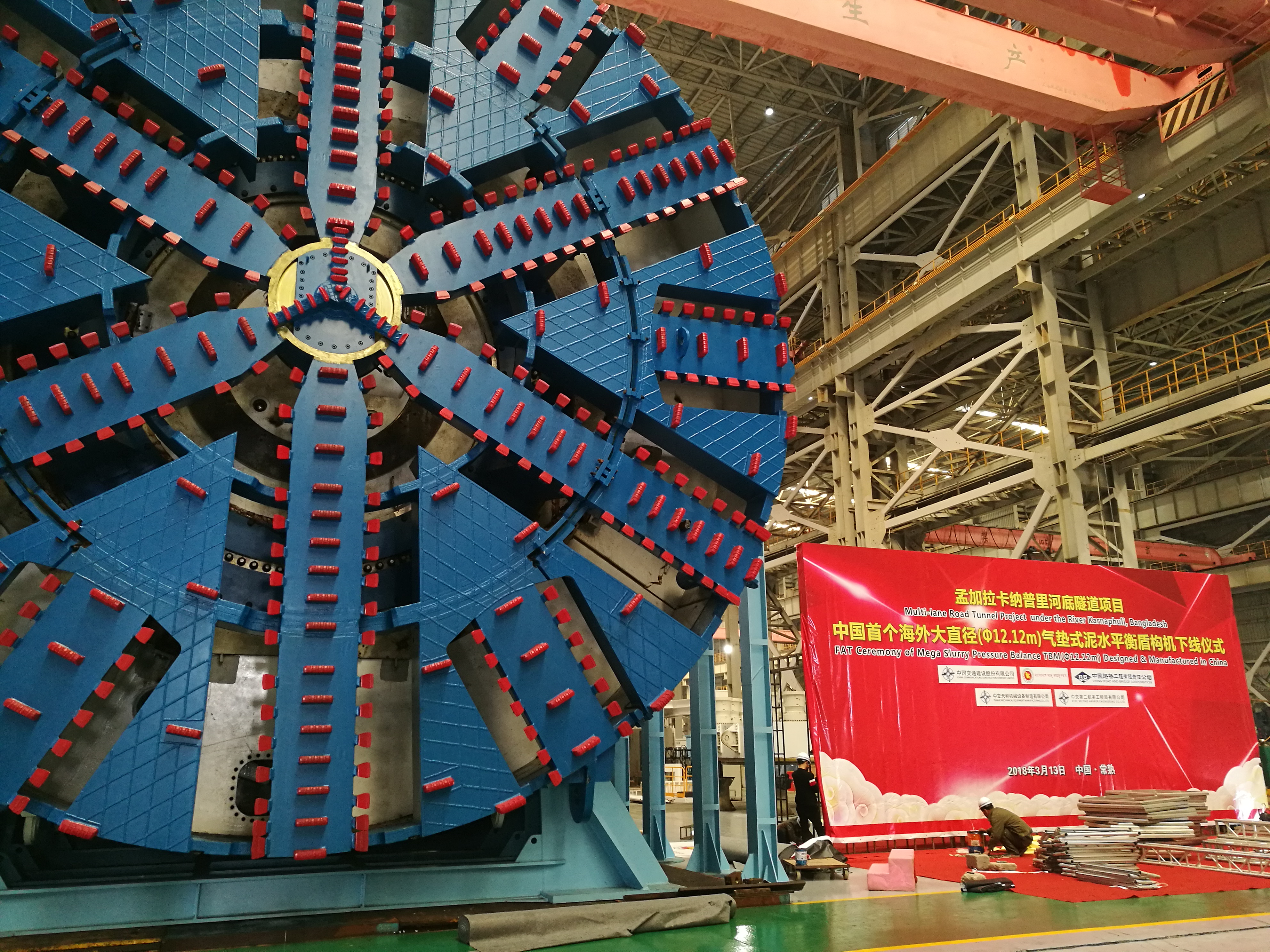 3月13日,由中交天和自主研制的中國出口海外大直徑盾構(gòu)機(jī)在江蘇常熟成功下線,盾構(gòu)機(jī)刀盤直徑達(dá)12.12米、長94米、重2200余噸,是南亞地區(qū)大直徑的盾構(gòu)機(jī)。該盾構(gòu)機(jī)將用于中國在海外大的盾構(gòu)公路隧道項(xiàng)目--孟加拉卡納普里河底隧道工程,打破了由發(fā)達(dá)國家對(duì)海外超大直徑盾構(gòu)市場的壟斷,標(biāo)志著中國盾構(gòu)機(jī)設(shè)計(jì)研發(fā)能力達(dá)到了領(lǐng)先水平。